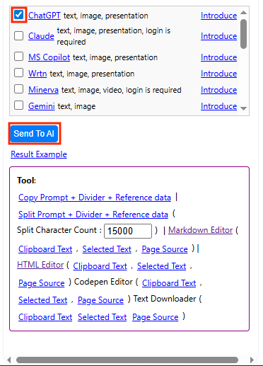In addition to instant-send AI tools, you can also access and use AI websites listed in the AI Collection.