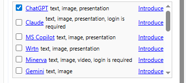 Select from multiple AI tools in one place and ask questions to one or several AIs at the same time. Choose the right AI for your purpose—text, images, presentations, music, voice, video, or 3D.