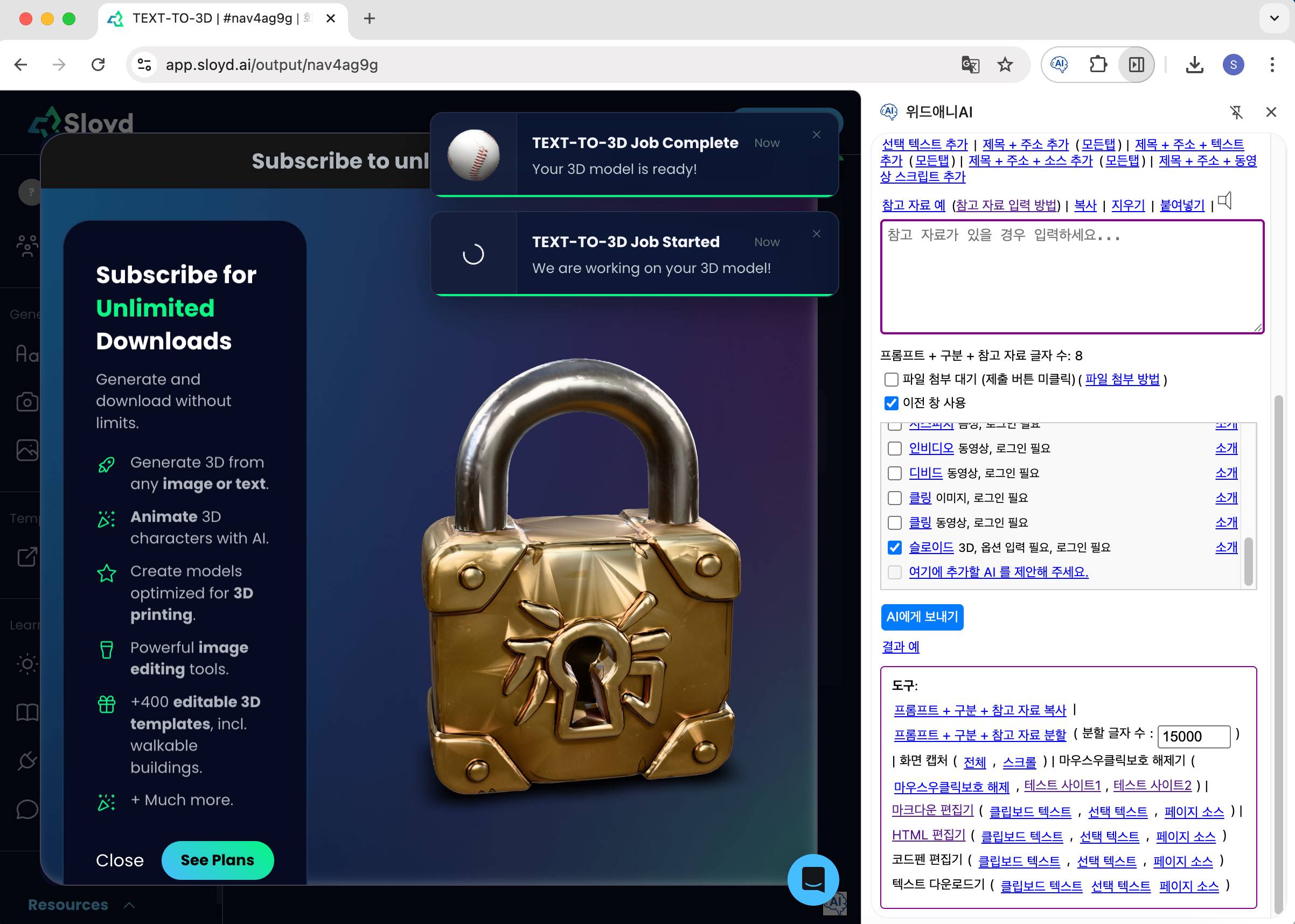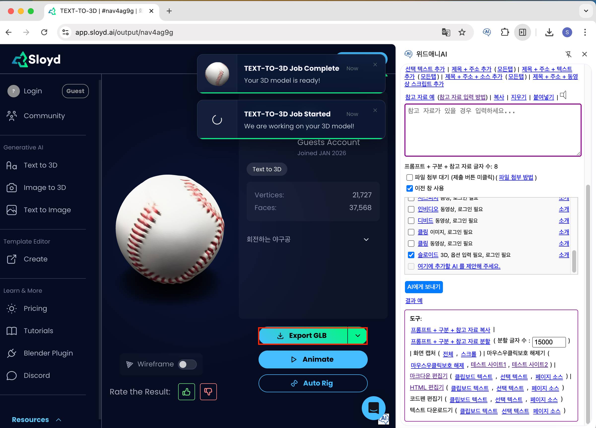 You can also select and use 3D generation AIs other than Sloyd.
